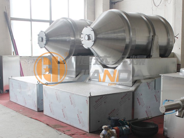 EYH Series 2D Motion Mixer (2D mixer & 2D blender) can make two motions at the same time. One motion is the rotation of the cylinder and the other motion is swing of the cylinder along the swinging rack. The materials will be rotated when the cylinder is rotating and mixed when the cylinder is swinging left and right. As a result of two motions, materials can be fully mixed in a short time. This mixer is suitable for mixing of power and granule materials.